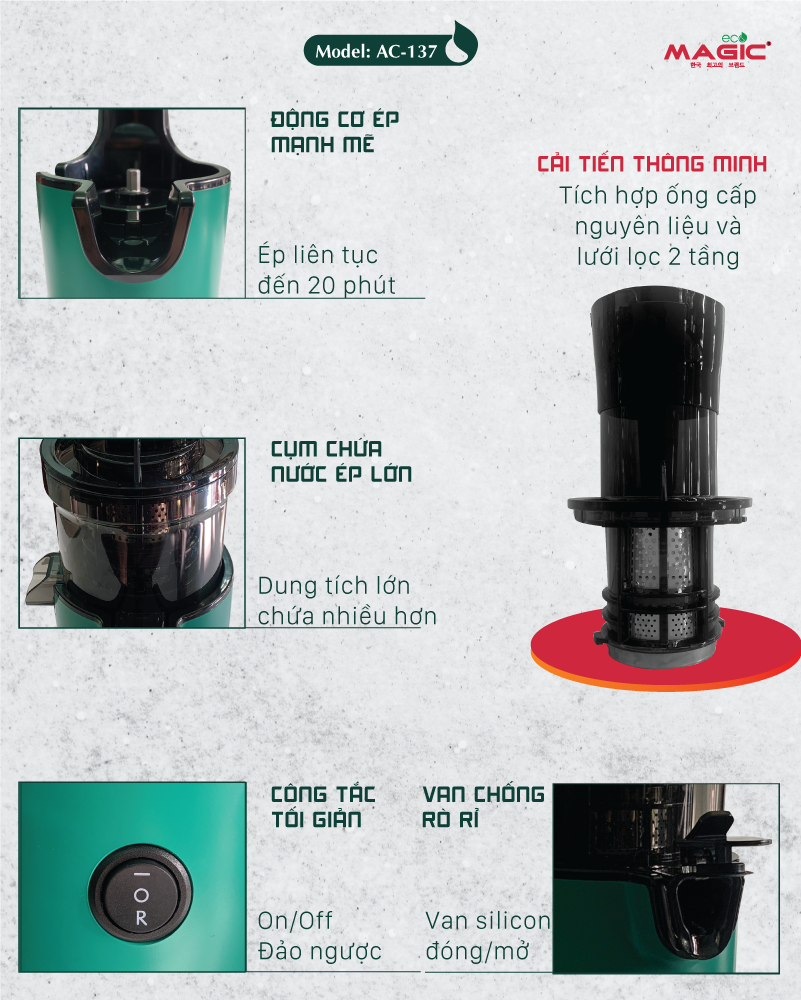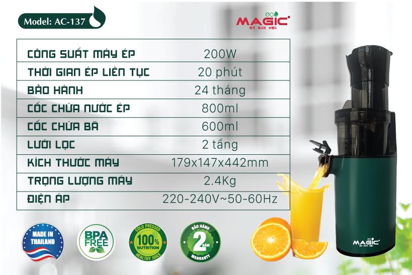 MÁY ÉP CHẬM MIỆNG RỘNG THẾ HỆ MỚI MAGIC ECO AC – 137 CÓ ĐỘ BỀN CAO